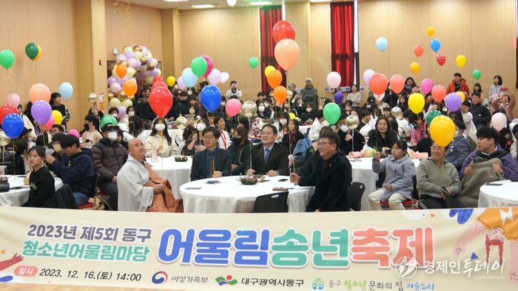 경제인투데이 유종운 기자 | 2023년 제5회 동구 청소년어울림마당 ‘어울림송년축제’가 지난 16일, 동구청소년문화의집 아름드리에서 개최됐다. 대구 동구청이 주최하고, 동구청소년문화의집 아름드리(관장 설영일)이 주관했다.