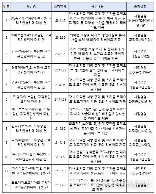 앞으로도 공정위는 보건복지부, 식약처 등 유관 기관과 처분 결과를 공유하는 등 의약품 시장에 만연한 리베이트 행위를 근절하고 공정거래질서를 확립할 수 있도록 불공정행위에 대한 감시를 지속해 나갈 것이다.