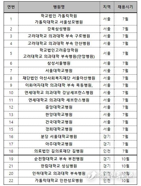 그간 일부 대형병원은 간호사의 긴급 사직에 따른 인력 공백을 최소화하기 위해 신규간호사를 일시에 채용하고, 필요시에 순차적으로 발령해 왔다