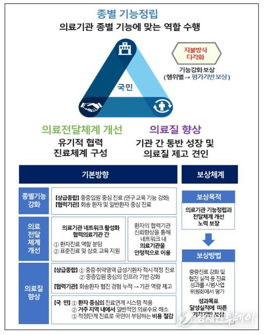 그간 경증외래 환자의 대형병원 쏠림으로 상급종합병원의 진료역량이 분산됨에 따라 중증 환자가 충분한 진료 상담을 받지 못하거나 제때 치료를 받지 못하는 문제가 발생했으며, 상 – 하위 종별 의료 기관은 기관 간 협력, 연계가 부족한 상태로 환자를 두고 경쟁하는 등비효율적인 전달체계의 문제도 제기됐다.