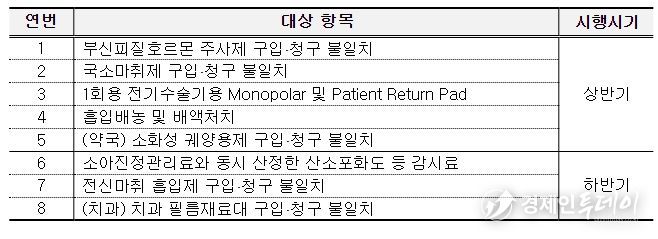 우선, 2월부터 부신피질호르몬 주사제, 국소마취제 구입·청구 불일치 항목에 대한 부당․착오 청구개연성이 높은 요양기관 380여 개소를 자율점검 대상기관으로 통보할 계획이다.