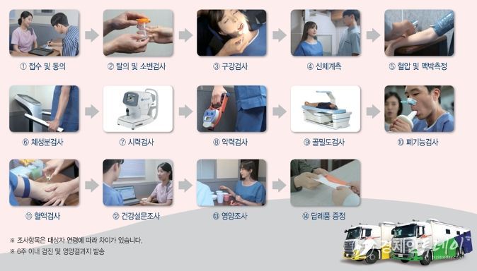 국민건강영양조사는 '국민건강증진법' 제16조에 따라 매년 전국 192개 지역에서 선정된 4,800가구의 1세 이상 가구원 약 1만 명을 대상으로 이동검진차량 내에서 건강 및 영양상태에 대한 약 400개 항목을 조사한다.
