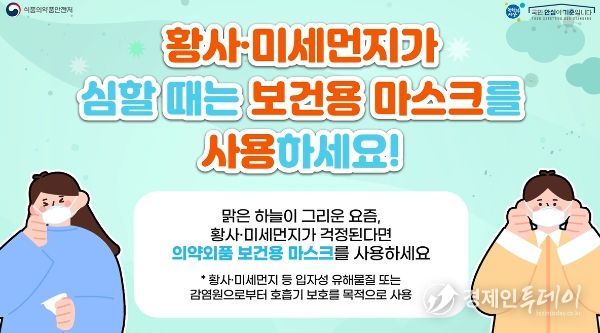 경제인투데이 류현민 기자 | 식품의약품안전처는 황사·미세먼지를 대비해 KF(Korea Filter) 보건용 마스크의 올바른 사용 방법 등을 알기 쉽게 설명하는 동영상을 제작해 3월 5일부터 식약처 누리집, 인스타그램, 옥외광고 등을 통해 배포한다고 밝혔다.