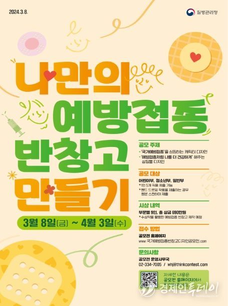 경제인투데이 류현민 기자 | 질병관리청은 예방접종 중요성을 널리 알리고 국민들의 예방접종에 대한 관심을 높이기 위해 3월 8일부터 4월 3일까지 예방접종 반창고 디자인 공모전을 개최한다고 밝혔다.