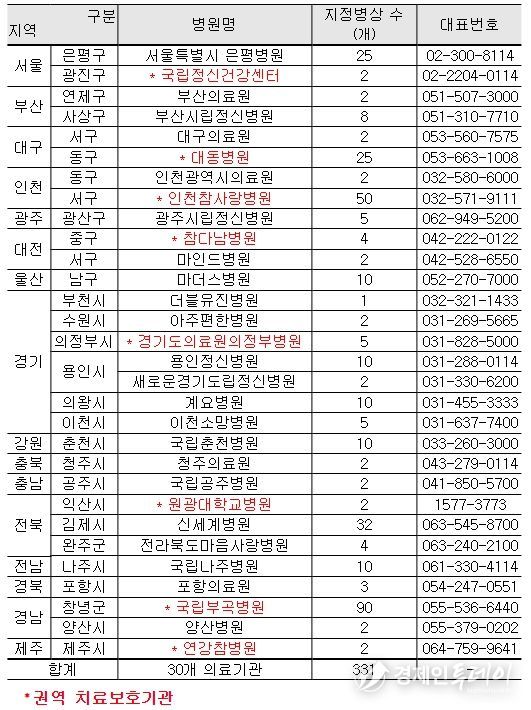 다만, 의료진 및 기반시설(인프라) 부족으로 신청하지 못한 강원 권역에 대해서는 4월까지 추가 공모를 거쳐 치료보호기관 1곳을 선정할 예정이다.