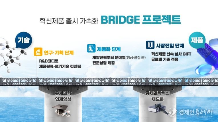 참고로 식약처는 국산 신기술이 혁신제품이 되어 세계시장을 선도할 수 있도록 국내 규제를 글로벌 스탠다드화하는 동시에, ➊R&D 코디, ➋맞춤형 사전상담(With-U), ➌규제 전문가 밀착 상담, ➍글로벌 기준 우선 적용, ➎신속심사 등을 제공하는 브리지(BRIDGE) 프로젝트를 추진하고 있다.