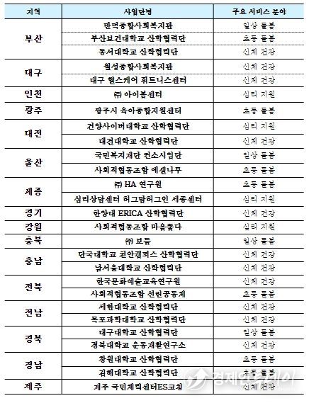2024년 활동할 27개의 사업단 중 12개 사업단은 청년신체건강증진 서비스를, 4개 사업단은 청‧중장년 일상돌봄 서비스를, 7개 사업단은 초등학생 돌봄 서비스를, 4개 사업단은 심리지원 서비스를 제공한다. 각 사업단은 선정 이후 제공인력 채용 및 서비스 제공 준비를 마치고 4월부터 본격 서비스 제공에 착수한다.