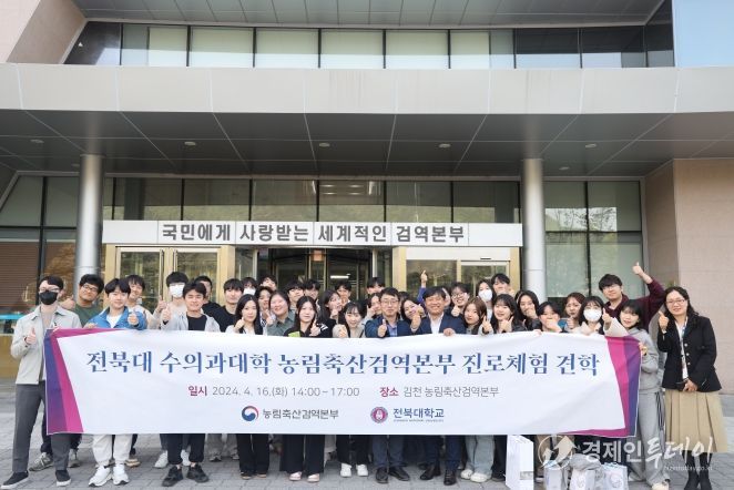 경제인투데이 류현민 기자 | 농림축산검역본부는 전국 10개 수의과대학생 대상 진로체험 견학 프로그램의 첫 번째 순서인 전북대학교의 진로체험 견학을 4월 16일 진행했다.