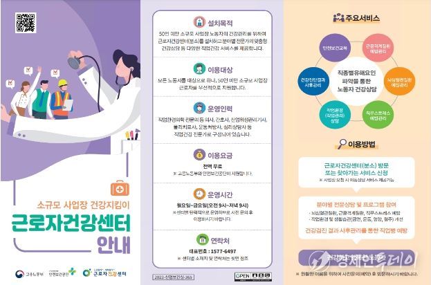 「근로자건강센터」는 2011년 인천 남동공단에 처음 설립된 이후 현재까지 전국에 24개 센터가 설치되어 있으며, 직업환경의학과 전문의, 간호사, 물리치료사, 산업위생사, 심리상담사 등 전문인력이 배치되어 50인 미만 소규모 사업장에서 일하는 근로자의 건강지킴이 역할을 하고 있다. 센터는 상대적으로 보건관리가 취약한 영세사업장의 근로자 및 특수형태근로종사자 등을 대상으로 뇌심혈관질환 및 근골격계질환 예방 프로그램을 운영하고, 건강검진 결과 직업병 질병의 소견이 있거나 관찰이 필요한 근로자의 사후관리, 작업환경을 개선하기 위한 컨설팅 및 교육 등을 하고 있다.