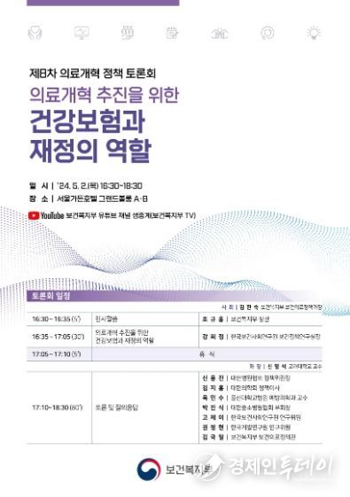 경제인투데이 류현민 기자 | 보건복지부는 5월 2일 16시 30분 서울 가든호텔(서울 마포구 소재)에서 「제8차 의료개혁 정책 토론회」를 개최했다.