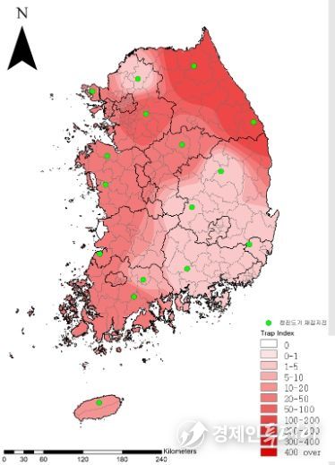 4월부터 시작한 참진드기 감시사업(국방부 국군의학연구소, 보건환경연구원, 기후변화 매개체 감시 거점센터와 협업(붙임 1 참고)) 운영 결과, 참진드기 지수*가 38.3으로 평년(20년~22년) 대비 37.5%, 전년 대비 29.6% 증가했다(붙임 2 참고).