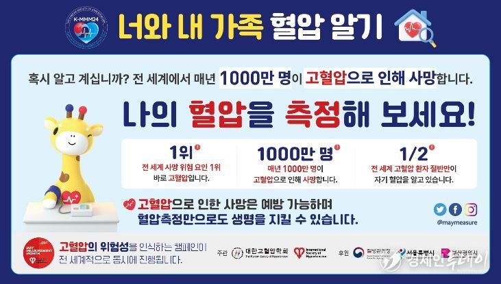 간담회에서 고혈압·당뇨병 등록관리사업 운영 방향을 공유하고, 지역 내 추진 현황 및 현장 의견을 청취한 뒤, 질병관리청과 대한고혈압학회에서 공동으로 추진하고 있는 '혈압측정 캠페인(K-MMM24)' 현장을 방문하여 관계자들의 노고를 격려했다.