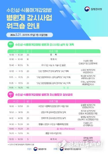 경제인투데이 류현민 기자 | 질병관리청은 2024년 「수인성·식품매개감염병 병원체 감시사업」 워크숍을 5월 31일(금) 서울 코리아나호텔에서 개최한다.