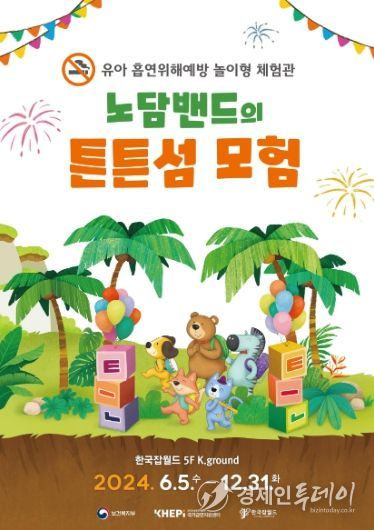 경제인투데이 류현민 기자 | 보건복지부와 한국건강증진개발원은 6월 5일부터 12월 31일까지 경기도 성남시 한국잡월드(이사장 이병균)에서 동화 속 주인공들과 함께 놀이하며 흡연의 위해성을 배울 수 있는 유아 및 어린이 대상 놀이·체험형 전시 콘텐츠 ‘노담밴드의 튼튼섬 모험’을 전시한다고 밝혔다.