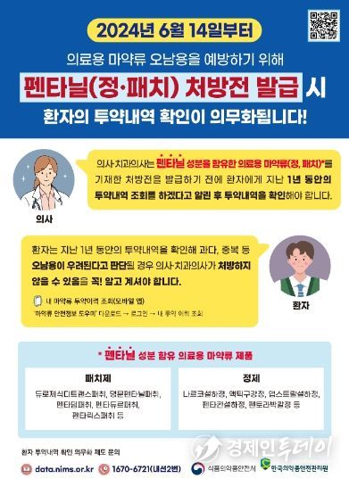 의사·치과의사는 펜타닐 성분을 함유한 의료용 마약류를 기재한 처방전을 발급하기 전에 해당 환자의 투약내역(지난 1년)을 조회해야 한다. 이 경우 환자에게 미리 조회 사실을 알려야 한다.