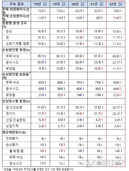 경제인투데이 류현민 기자 | 질병관리청은 2022년 손상으로 인해 병원에 입원한 환자의 발생현황 조사결과인 '2022년 퇴원손상통계' 및 원시자료를 6월 26일부터 대국민 공개한다고 밝혔다.