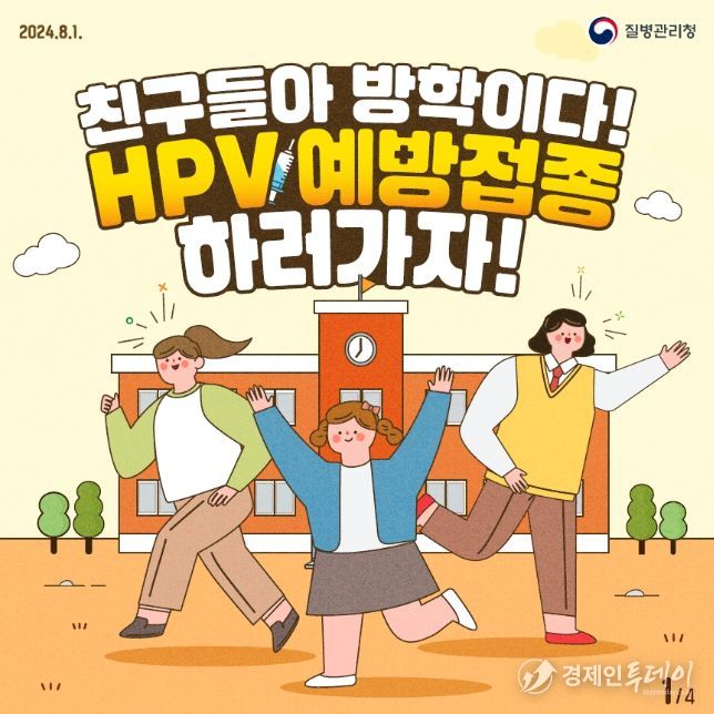 경제인투데이 류현민 기자 | 질병관리청은 사람유두종바이러스(Human Papillomavirus) 국가예방접종 지원 대상자에게 여름방학을 활용하여 예방접종 받기를 당부했다.