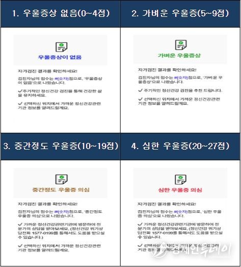 이번 서비스는 우울증 자가검진을 제공하는 것에서부터 시작한다. 우울증 검진도구 PHQ-9은 현재 국가건강검진에서 활용 중인 것과 동일한 것으로 저작권자인 고려대학교 구로병원 한창수 교수의 협조로 활용된다. 향후 수요를 고려하여 불안증, 조기정신증 등 다른 질환과 관련된 검진도구도 순차적으로 추가할 예정이다.