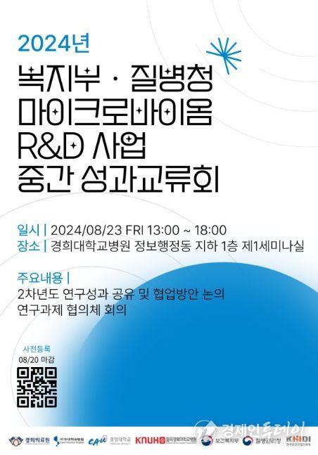 경제인투데이 류현민 기자 | 질병관리청 국립보건연구원은 2024년 8월 23일, 경희대학교병원에서 2024년 질병청-복지부 인체 마이크로바이옴 연구개발(R&D)사업 중간 성과교류회를 개최한다고 밝혔다.
