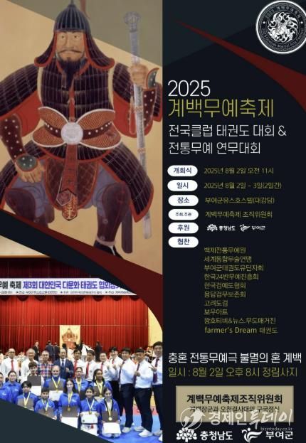 경제인투데이 류현민 기자 | ‘2025 계백무예축제’가 오는 8월 2일부터 3일까지 2일간 부여군 유스호스텔 대강당에서 열린다.