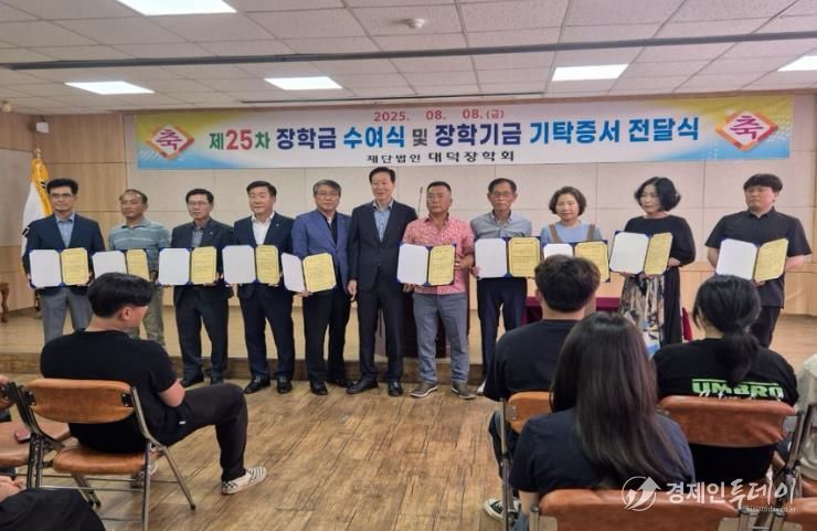 경제인투데이 류현민 기자 | 장흥군 대덕읍 대덕장학회는 8일 대덕읍행정복지센터에서 ‘2025년 제25차 장학금 수여식 및 장학기금 기탁증서 전달식’을 개최했다.