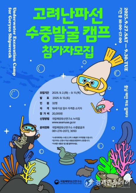 경제인투데이 류현민 기자 | 국가유산청 국립해양유산연구소는 오는 9월 27일부터 30일까지 일반 국민들이 수중유산 조사를 직접 체험해볼 수 있는 '고려난파선 수중발굴 캠프'를 운영한다. 지금까지는 수중발굴 전문가들만 경험해 볼 수 있었던 신비롭고도 역사적인 바다가 이제는 국민에게 활짝 열리는 것이다.