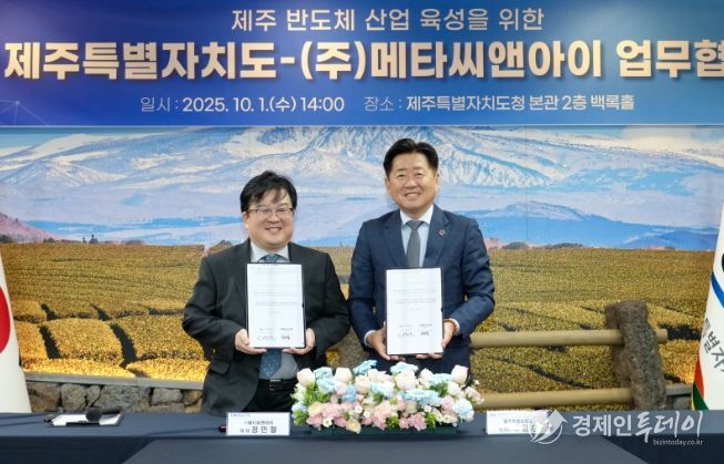제주도는 1일 오후 도청 백록홀에서 인공지능(AI) 시스템반도체 기업인 메타씨앤아이와 업무협약을 체결했다.