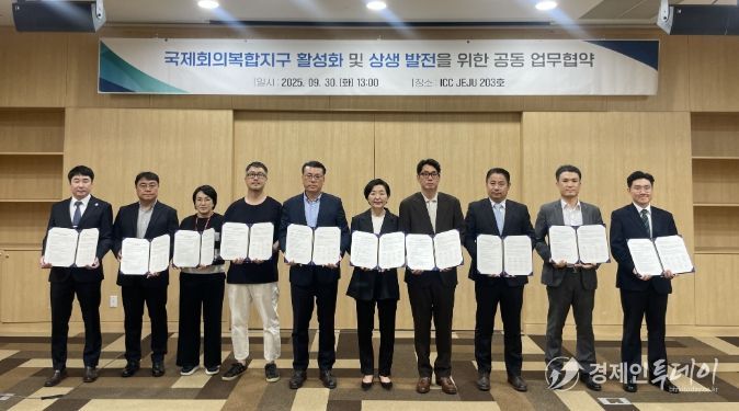 경제인투데이 류현민 기자 | 제주국제컨벤션센터(대표이사 이선화, 이하 ICC JEJU)는 9월 30일(화) 신라호텔 제주, 롯데호텔 제주, 파르나스호텔 제주 등 제주국제컨벤션센터 주변 숙박 및 관광시설 11곳과 ‘제주 국제회의복합지구 활성화 및 상생 발전을 위한 업무협약’을 체결했다.