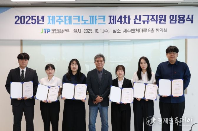 경제인투데이 류현민 기자 | 제주테크노파크(원장 지영흔, 제주TP)가 1일 제주벤처마루 9층 회의실에서 6명의 신규직원에게 임명장을 수여했다.