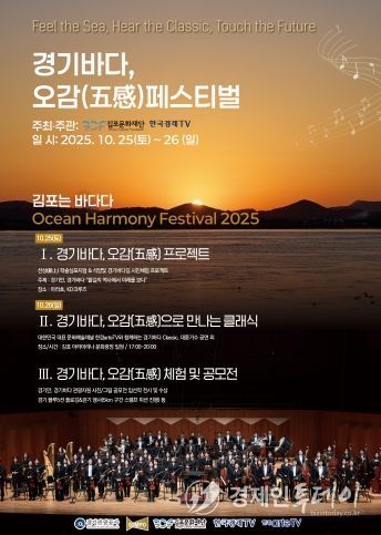 경제인투데이 류현민 기자 | (재)김포문화재단은 오는 10월 25일부터 26일까지 양일간 김포 아라마리나 문화광장에서 'Ocean Harmony Festival 2025, 경기바다 오감(五感) 페스티벌'을 개최한다고 밝혔다. 이번 행사는 한국경제TV 및 한경arteTV가 주관하고 경기관광공사가 후원한다.