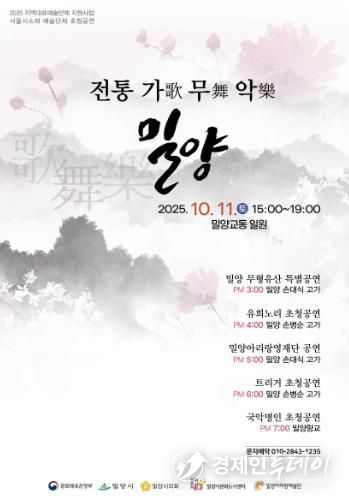 행사는 밀양 지역 예술인과 서울 소재 예술단체가 참여하는 초청 공연으로 구성된다.