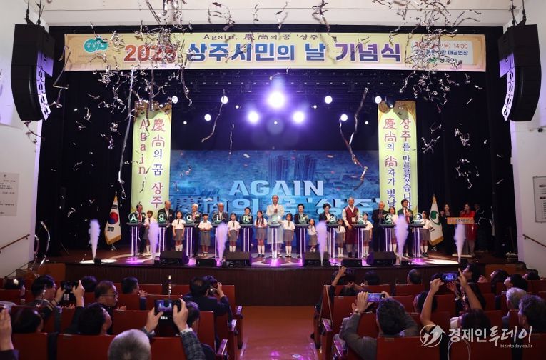 경제인투데이 류현민 기자 | 상주시는 Again, 慶尙의 꿈 ‘상주’를 주제로 한 시민의 날 기념식을 10월 2일 상주문화회관 대공연장에서 개최했다. 상주시민의 날(매년 10월 12일)을 앞두고 개최된 이날 기념식에는 상주시 노인회장과 읍면동 분회장 등 지역 원로들과, 각급 기관·단체장, 출향인 등 500여 명의 시민이 함께해 Again, 慶尙의 꿈의 실현을 향한 염원을 한데 모았다.