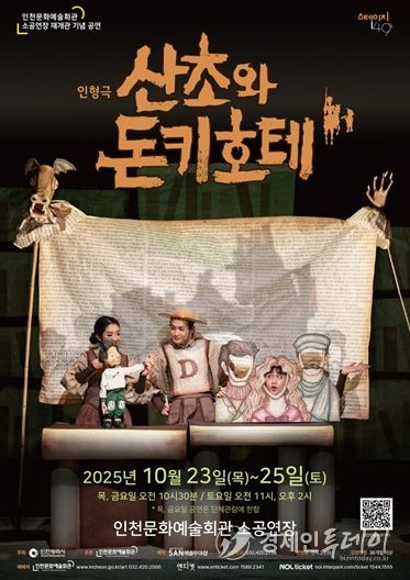 경제인투데이 류현민 기자 | 인천문화예술회관은 오는 10월 23일부터 25일까지 소공연장에서 예술무대산의 가족 인형극 〈산초와 돈키호테〉를 무대에 올린다. 이번 공연은 어린이 눈높이에 맞춘 명작을 소개하는 인천문화예술회관의 ‘어린이명작무대’의 일환으로 마련됐다.