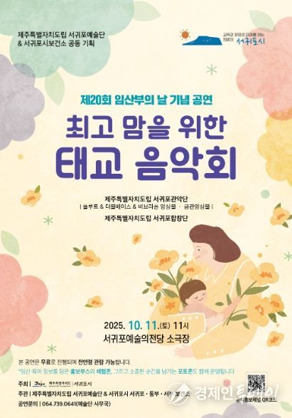 경제인투데이 류현민 기자 | 서귀포시는 오는 10월 11일 11시 서귀포예술의전당 소극장에서 제주특별자치도립 서귀포예술단과 서귀포보건소가 공동으로 주관하는 제20회 임산부의 날 기념 공연 '최고 맘을 위한 태교음악회'를 개최한다.