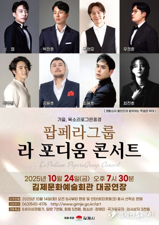 경제인투데이 류현민 기자 | 깊어 가는 가을, 특별한 음악의 향연 팝페라 그룹'라 포디움 콘서트'가 오는 24일 오후 7시 30분 김제문화예술회관 대공연장에서 펼쳐진다.