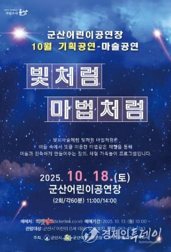 경제인투데이 류현민 기자 | 군산어린이공연장이 오는 10월 18일 어린이들의 상상력과 창의력을 자극하는 특별한 체험형 공연 '빛처럼 마법처럼'을 선보인다.