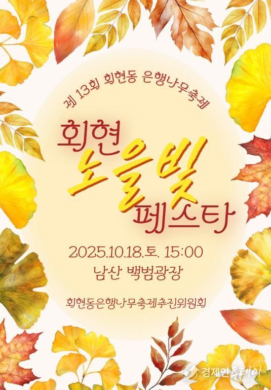 경제인투데이 류현민 기자 | 제13회 회현동 은행나무축제 '회현 노을빛 페스타'가 오는 18일 오후 3시부터 7시까지 남산 백범광장에서 열린다.