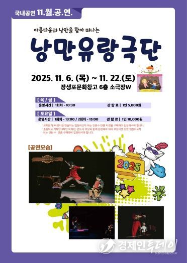 경제인투데이 류현민 기자 | 고래문화재단(이사장 서동욱)은 11월 6일부터 22일까지 어린이를 위한 상설공연으로 ‘낭만 유랑극단’을 총 12회에 걸쳐 무대에 오른다고 밝혔다.