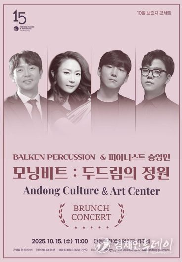 경제인투데이 류현민 기자 | 안동문화예술의전당은 매월 둘째 주 수요일, 클래식 애호가들을 위한 감성 콘서트 시리즈인 ‘브런치 콘서트’를 꾸준히 선보이며 지역 문화 활성화에 앞장서고 있다. 10월의 브런치 콘서트, '모닝비트: 두드림'이 오는 10월 15일 오전 11시, 안동문화예술의전당 백조홀에서 열린다.