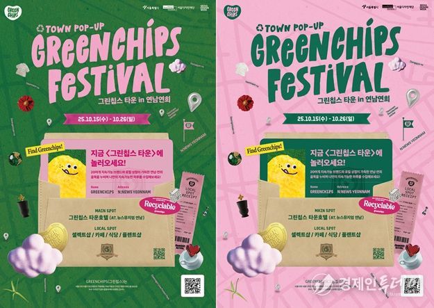 ‘그린칩스 타운’이라는 지속가능한 라이프스타일 마을을 컨셉으로 마포구 연남동, 연희동 일대 21개 지역상점과 중구 동대문디자인플라자(DDP) 내 2곳(뮤지엄 디자인둘레길, 어울림광장)에서 ▴식음료와 디저트 ▴팝업 매장 ▴골목길 투어 ▴워크숍 등이 다채롭게 열린다.