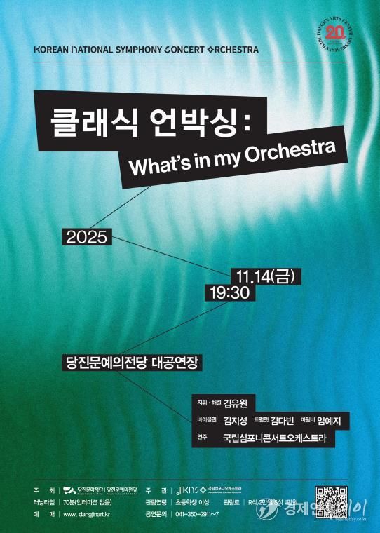 경제인투데이 류현민 기자 | (재)당진문화재단·당진문예의전당은 오는 11월 14일 금요일 오후 7시 30분, 당진문예의전당 대공연장에서 국립심포니콘서트오케스트라 초청 공연‘클래식 언박싱 : What’s in my Orchestra’를 선보인다.