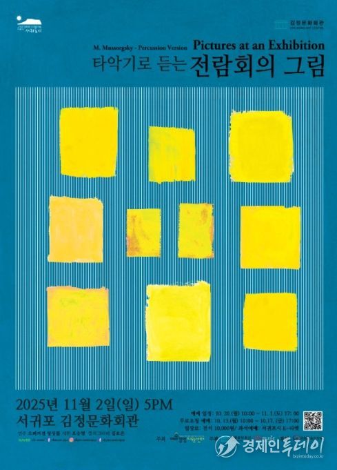 경제인투데이 류현민 기자 | 서귀포시는 2024년 10월 공모를 통해 11월에 선정된 2025년 공연예술 지역 유통지원사업의 일환으로, 11월 2일 오후 5시 김정문화회관에서 '타악기로 듣는 전람회의 그림' 타악기 앙상블 공연을 선보인다.