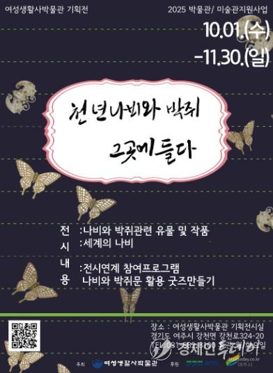 경제인투데이 류현민 기자 | 여주시에서 진행하는 2025년 박물관·미술관 지원사업의 일환으로 여성생활사박물관의 ‘천년 나비와 박쥐 그곳에 들다’ 전시가 10월 1일부터 11월 30일까지 개최된다.