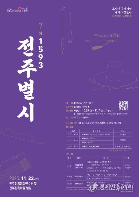시는 전주의 역사적 사실을 바탕으로 지난 2017년부터 ‘1593 전주별시’ 재현행사를 이어오고 있으며, 올해는 △과거시험(국궁(國弓), 한글 글짓기-산문/운문, 한시(漢詩)) △방방례(시상식) △급제자 유가행렬(遊街行列) △사은숙배(謝恩肅拜) △전통문화체험 프로그램 등으로 꾸민다.