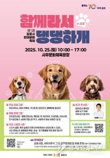 경제인투데이 류현민 기자 | 김포시는 반려동물과 시민이 함께하는 문화의 장인 제1회 김포시 반려문화축제 '함께라서 댕댕하개 in 김포'가 오는 10월 25일 사우문화체육광장(사우동)에서 개최된다고 밝혔다.