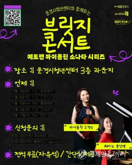 경제인투데이 류현민 기자 | 문경시청년센터는 오는 10월부터 12월까지 문경시청년센터 3층 라운지에서 클래식을 주제로 한‘브릿지 콘서트’를 연다.