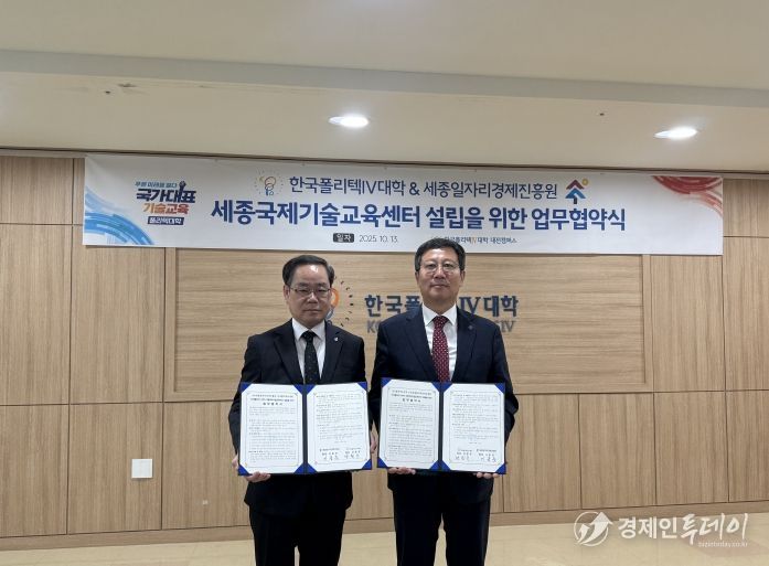 경제인투데이 류현민 기자 | 세종일자리경제진흥원과 한국폴리텍Ⅳ대학은 13일 한국폴리텍Ⅳ대학 대전캠퍼스에서 ‘세종국제기술교육센터’ 설립 및 운영을 위한 업무협약을 체결했다.