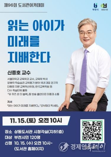 경제인투데이 류현민 기자 | 부천시는 11월 15일 오전 10시 부천시립상동도서관 시청각실에서 인공지능(AI)·디지털 시대 학습 경쟁력의 핵심인 문해력을 주제로 ‘제96회 도서관 아카데미’를 연다. 이번 강연은 ‘읽는 아이가 미래를 지배한다’의 저자이자 서울대학교 교육학과 교수인 신종호 교수를 초청해 진행한다.