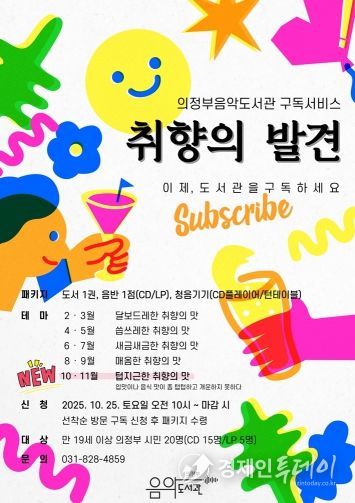 경제인투데이 류현민 기자 | 의정부음악도서관은 시민이 다양한 감성과 취향을 발견하고 경험할 수 있도록 기획한 구독형 문화서비스 ‘취향의 발견’의 2025년 다섯 번째 이야기 ‘텁지근한 취향의 맛’ 편을 10월 25일부터 운영한다.