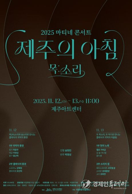 경제인투데이 류현민 기자 | 제주아트센터는 11월 12일과 13일 이틀간 오전 11시 마티네 콘서트 ‘제주의 아침’을 개최한다.